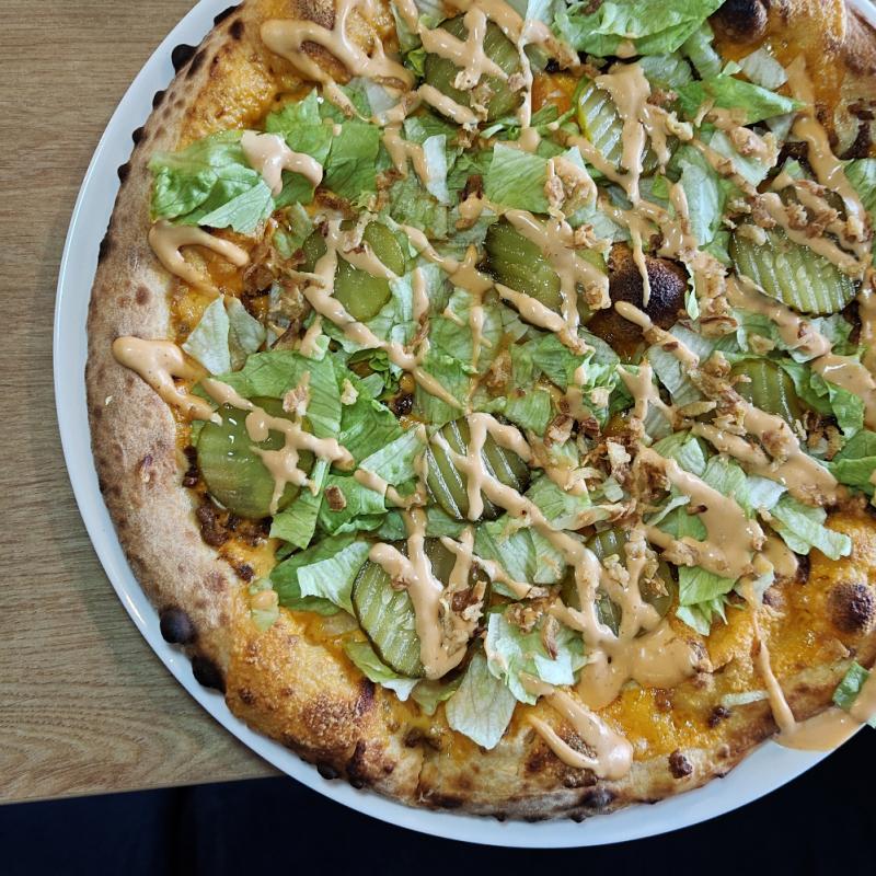 Sos big mak/ cheddar / wołowina / sałata lodowa / ogórek / cebula / cebulka prazona