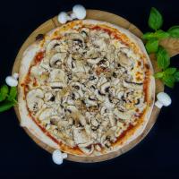 Sos pomidorowy, ser mozzarella, pieczarki, oregano / Tomatensauce, Mozzarella, Champignon, Oregano