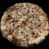 Sos pomidorowy, ser mozzarella, pieczarki, szynka, boczek,cebula, pieprz, płatki...